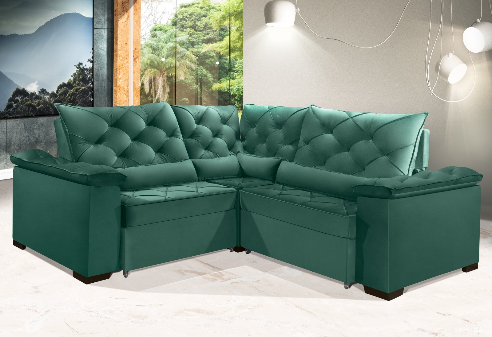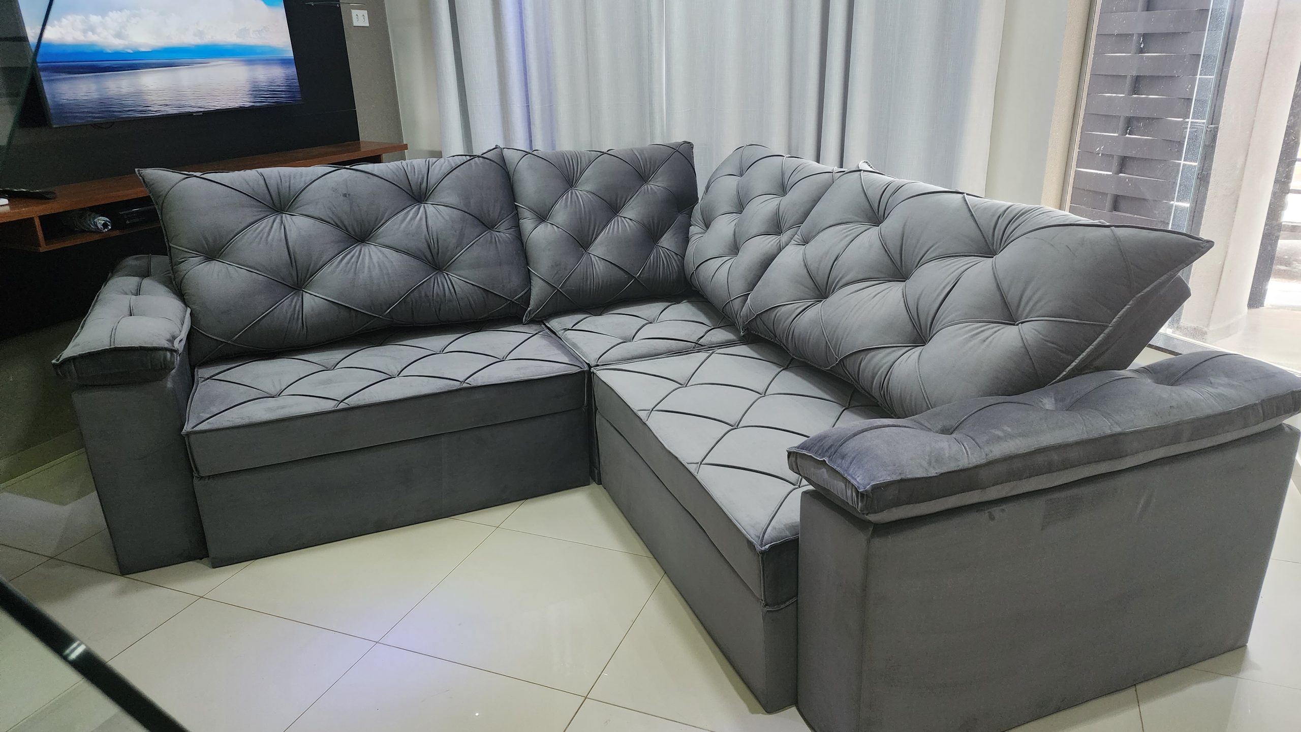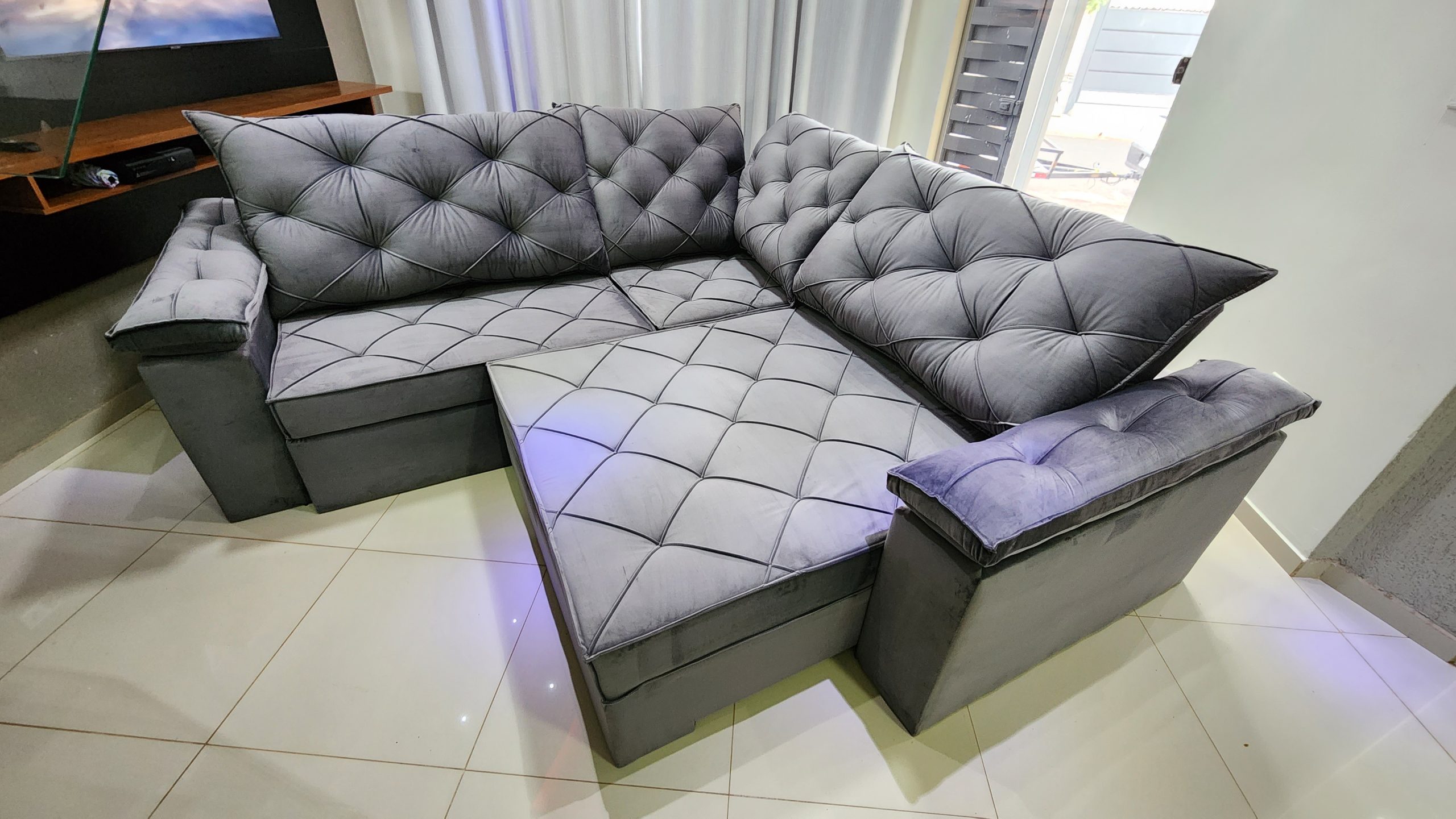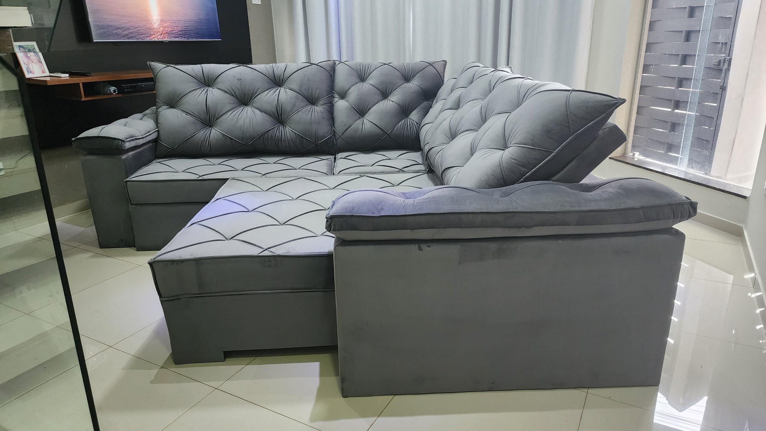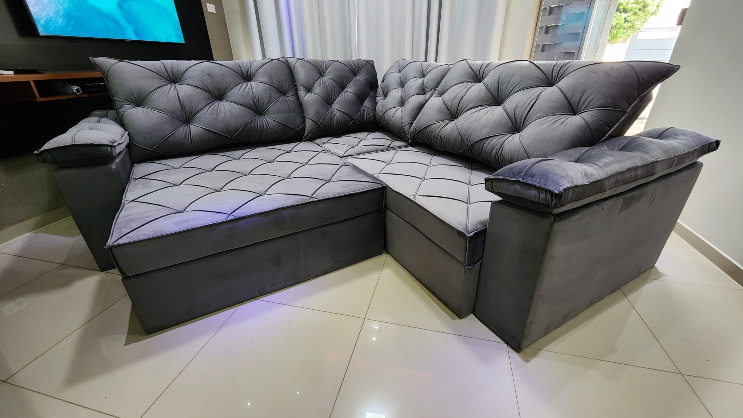 - Revestimento / Tecido: Veludo Inca – Mas temos outros tecidos.