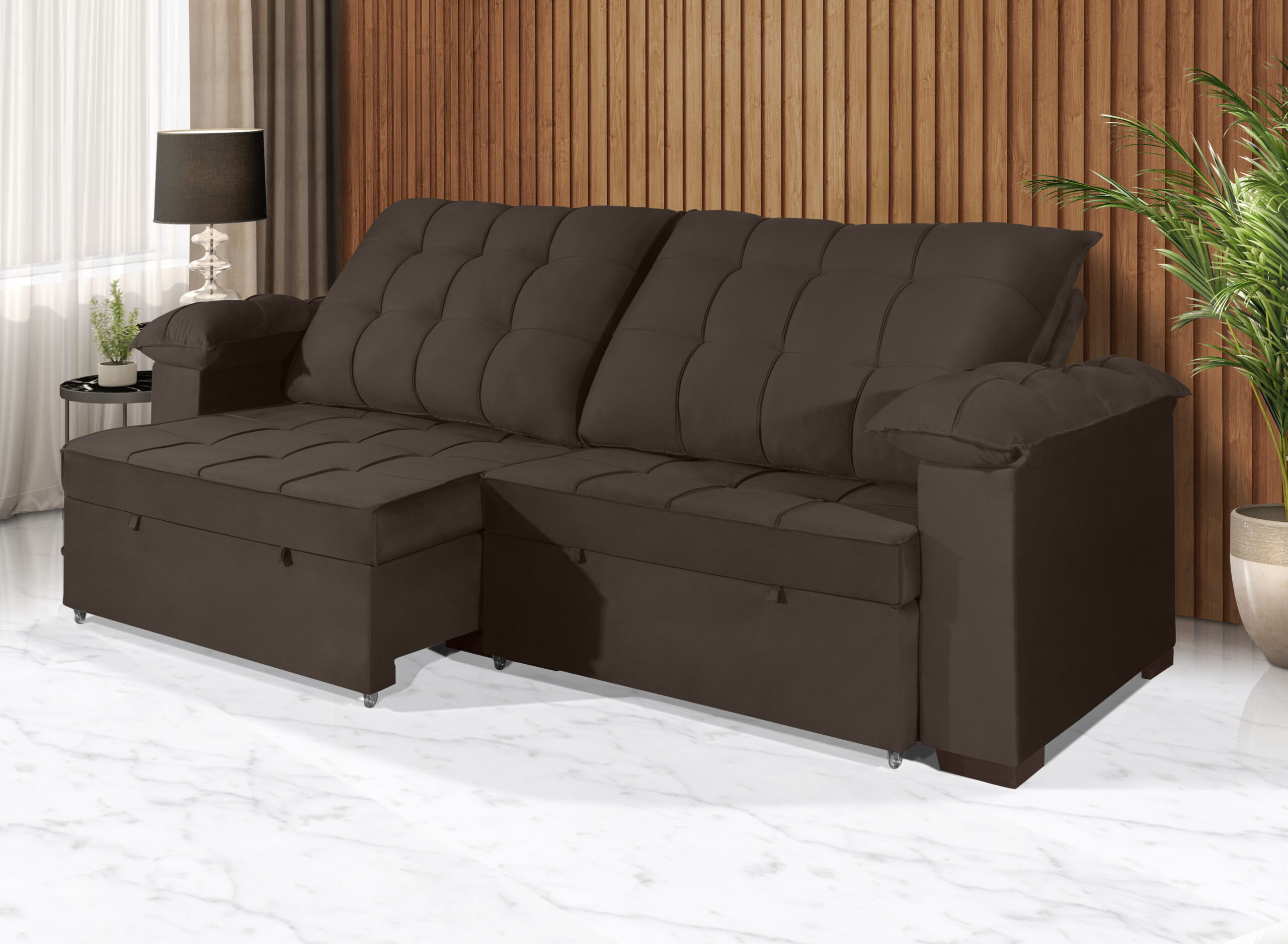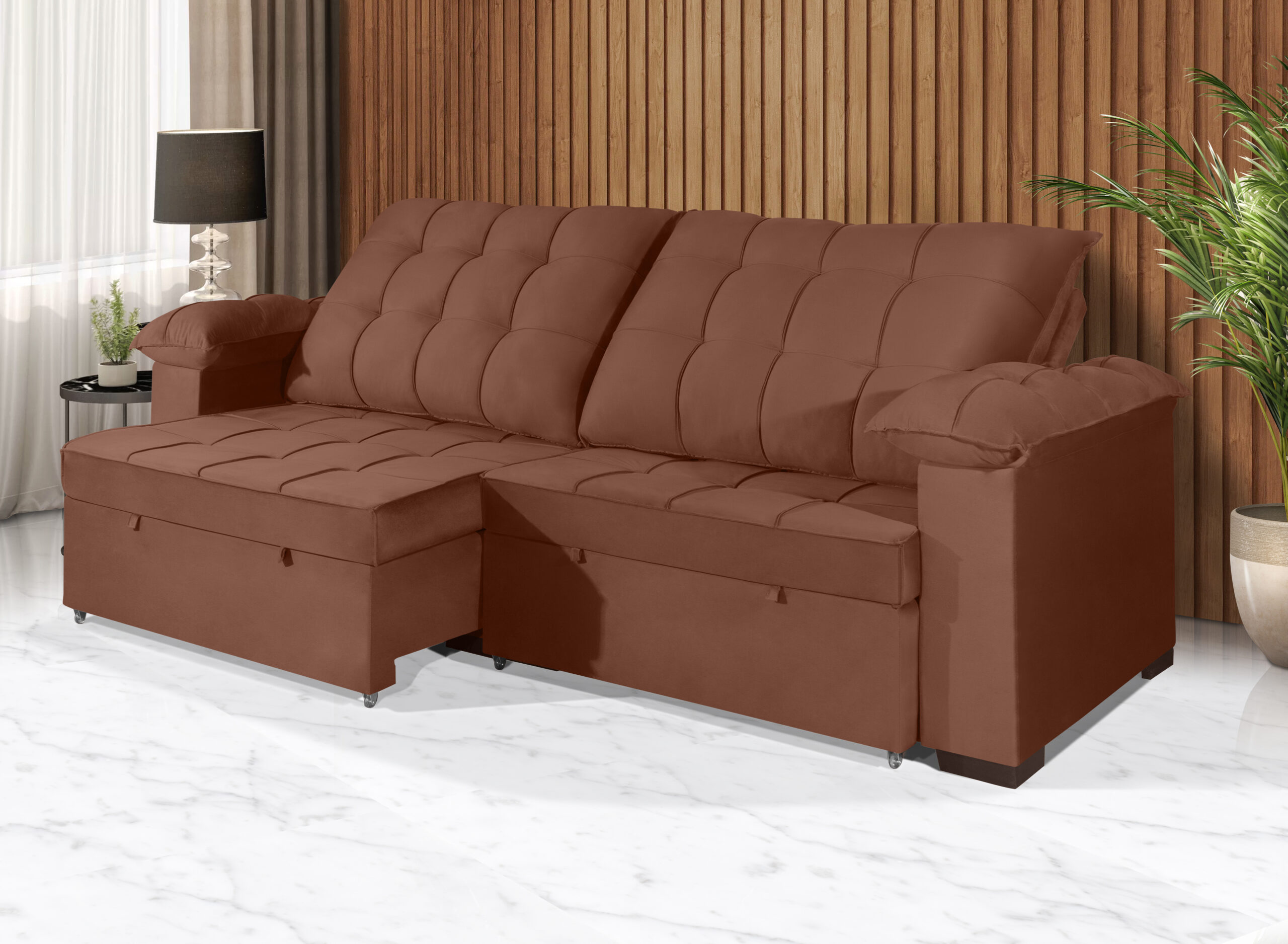 • Revestimento / Tecido: Veludo Inca – Mas temos outros tecidos.