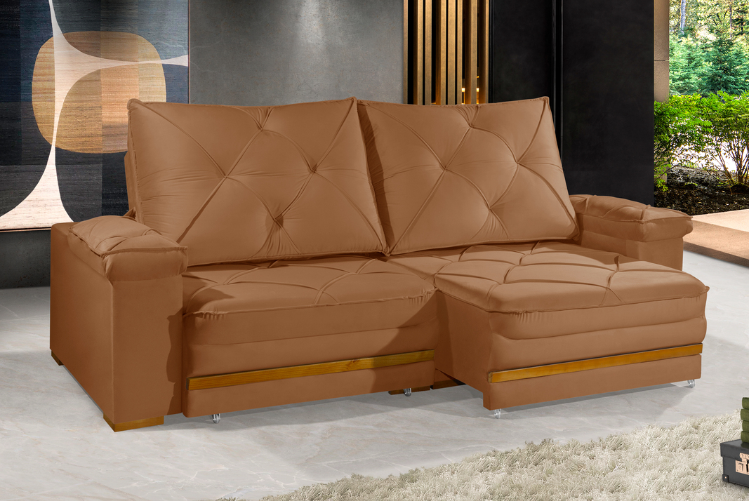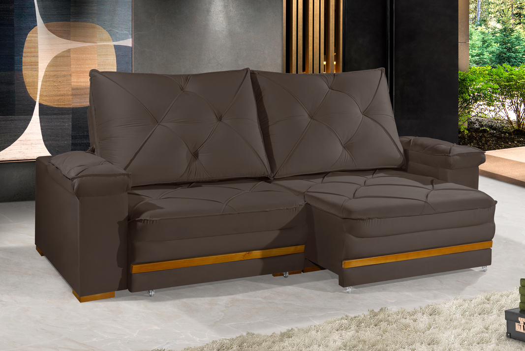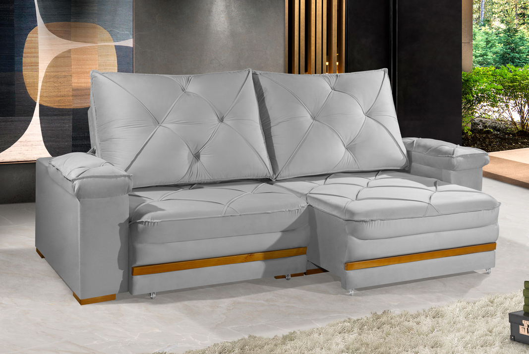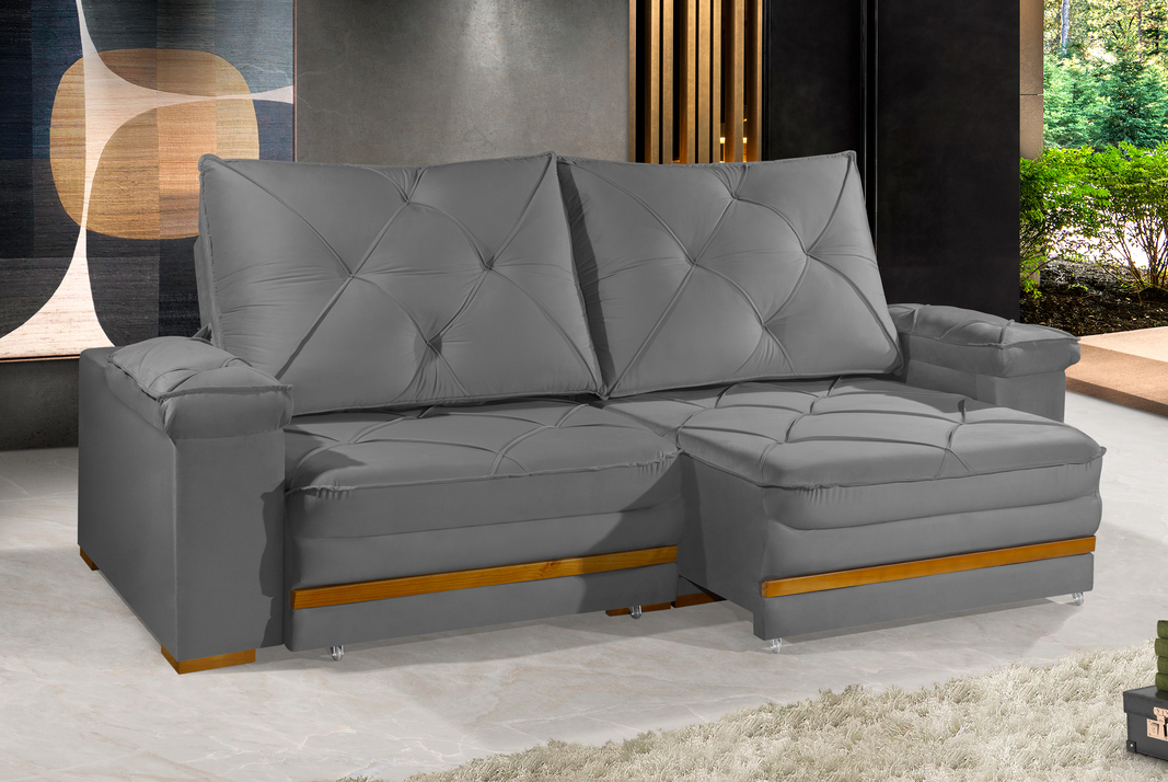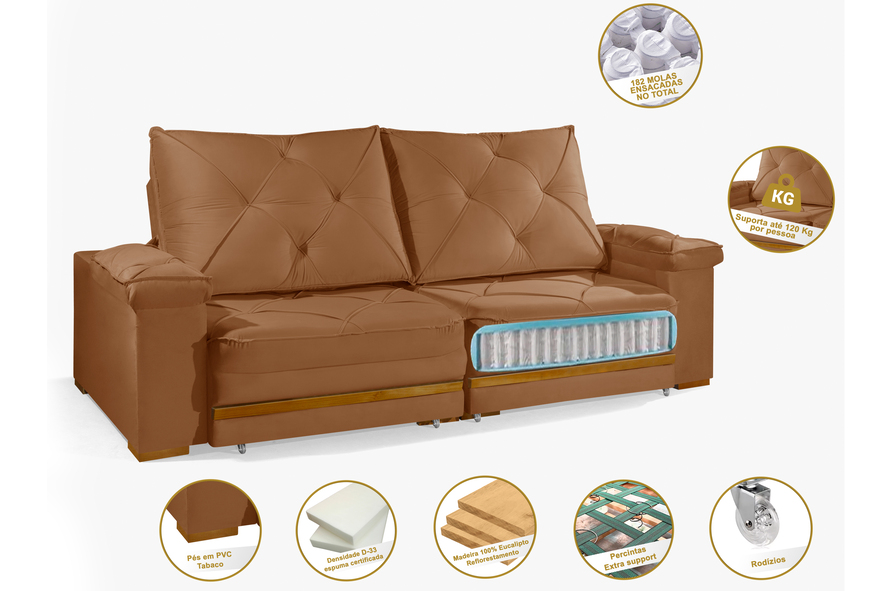 • Encosto reclinável com catraca de 4 posições, enchimento em fibra siliconada.