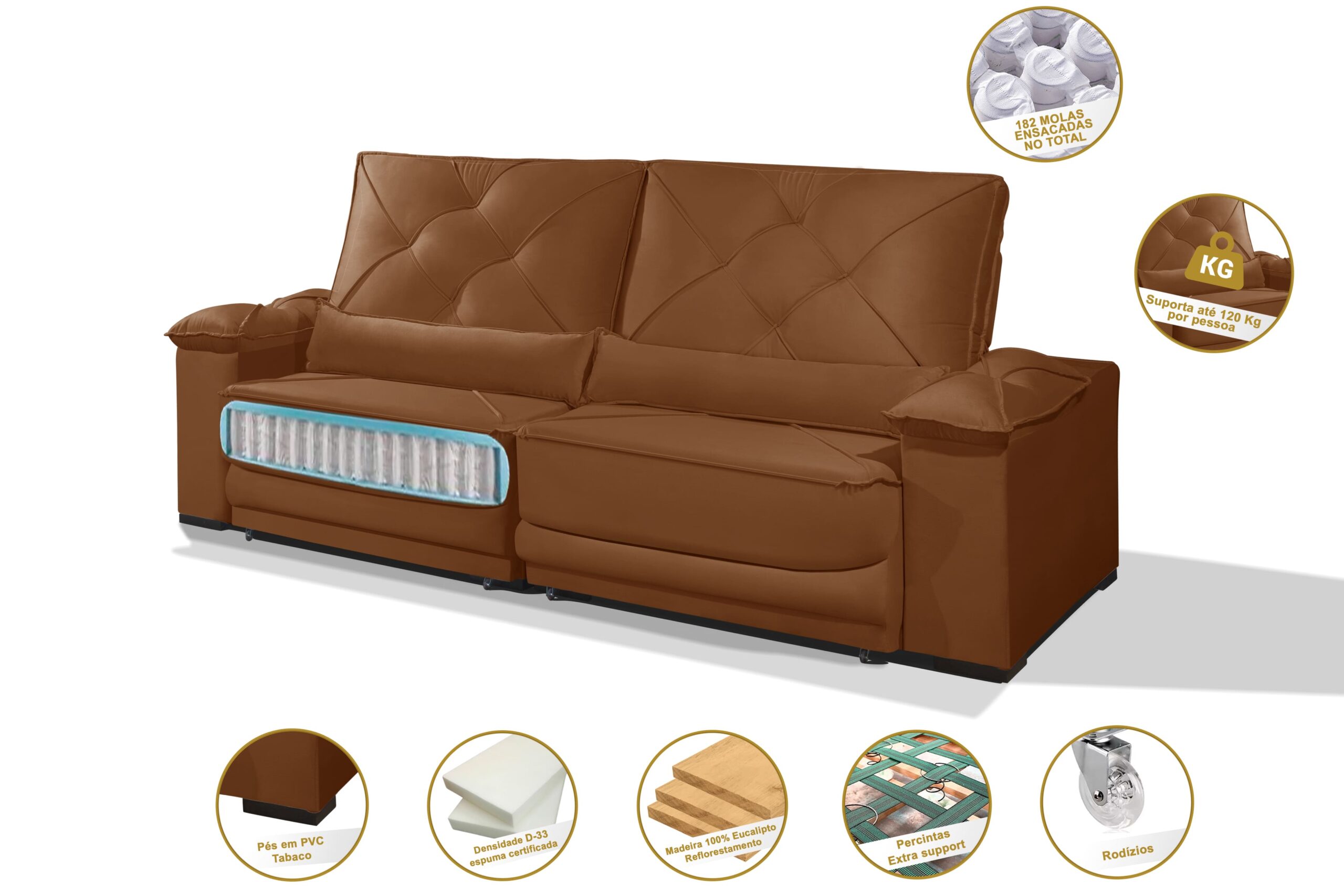 - Assento retrátil em espuma D-33, sustentação com cintas elásticas de alta resistência, molas bonel, corrediças metálicas tubulares com pillow de 20 cm.
