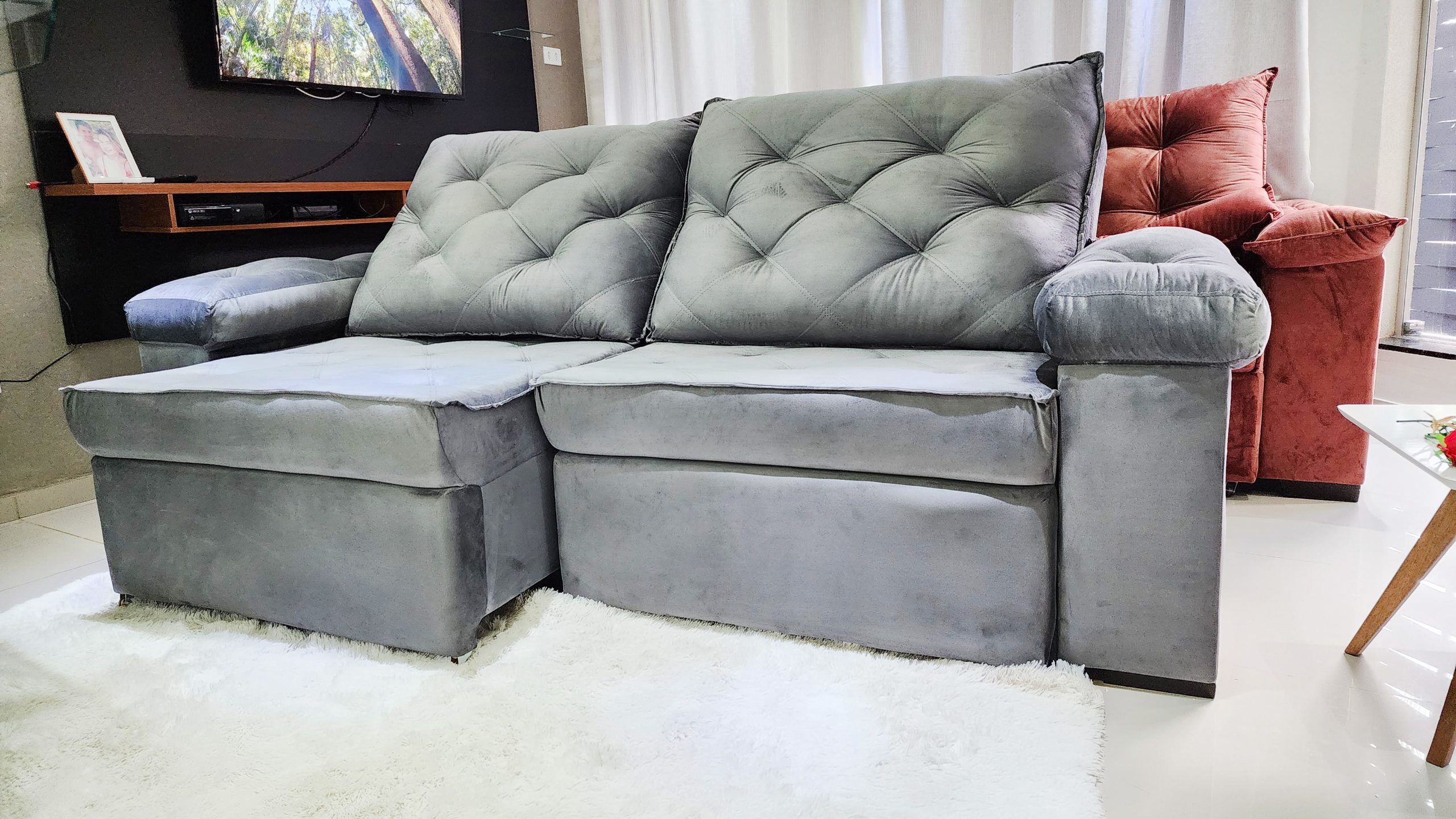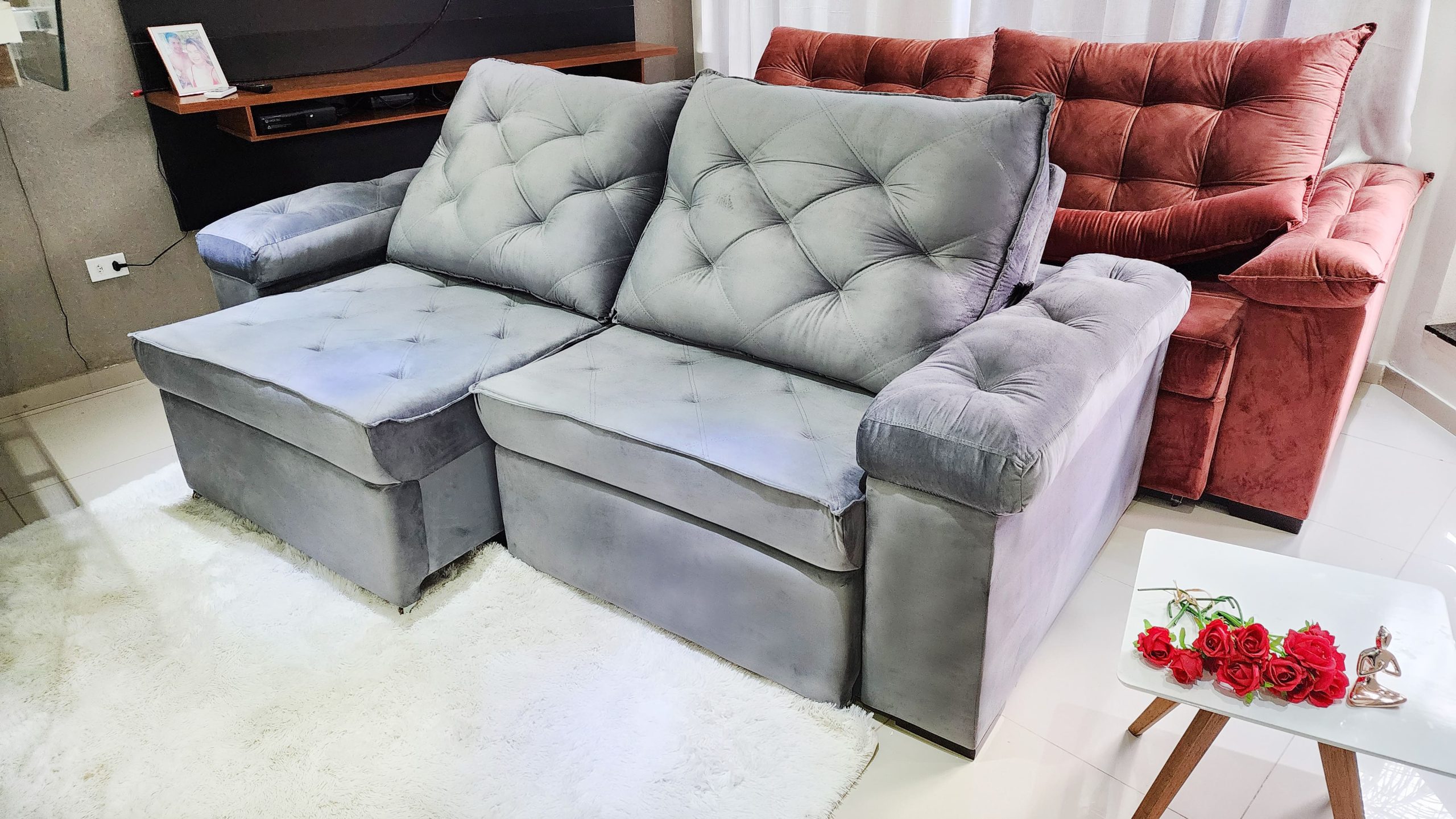 - Encosto reclinável com catraca blindada, enchimento em fibra siliconada.