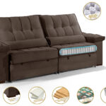 - Assento retrátil em espuma D-33, sustentação com cintas elásticas de alta resistência, molas ensacadas, corrediças metálicas tubulares com pillow de 20 cm.