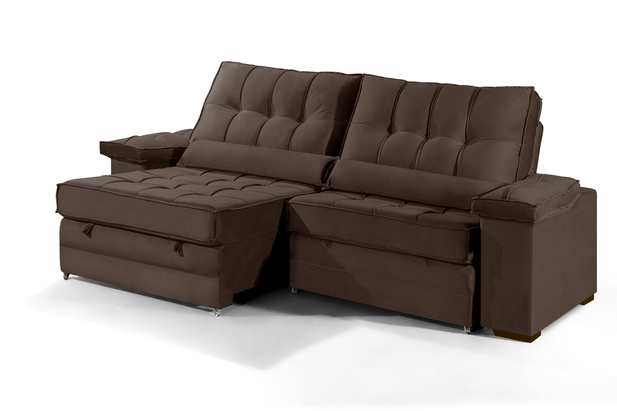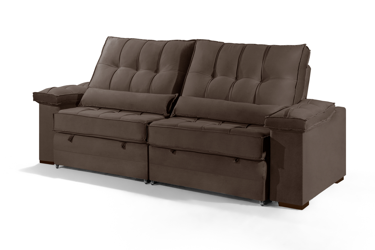 - Assento retrátil em espuma D-33, sustentação com cintas elásticas de alta resistência, molas ensacadas, corrediças metálicas tubulares com pillow de 20 cm.